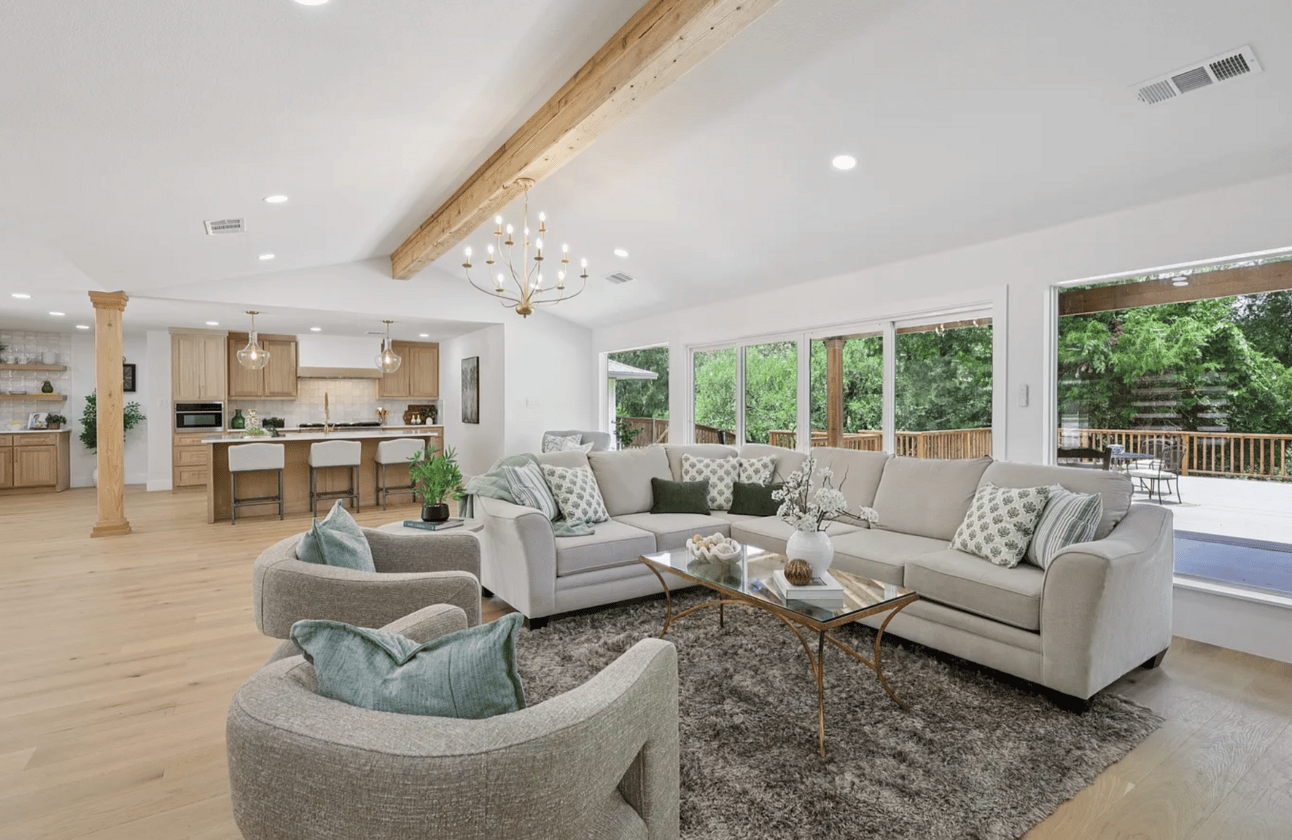 🎨 Designer finishes, wood-accented cathedral ceilings & trending color palette